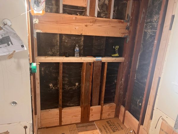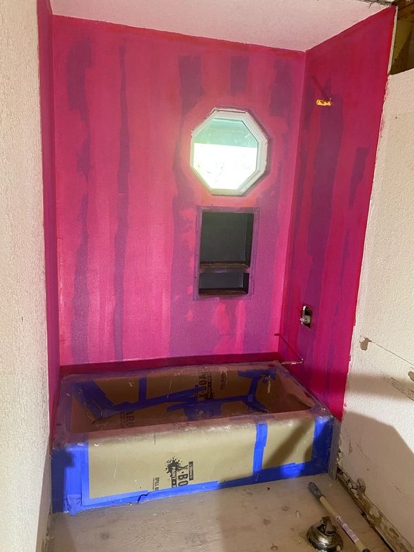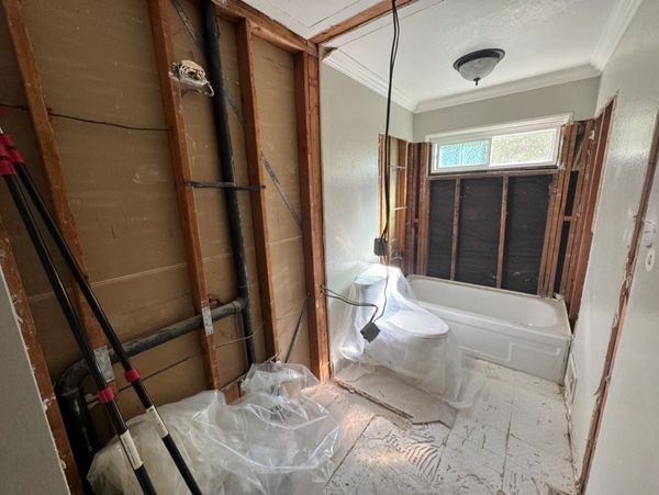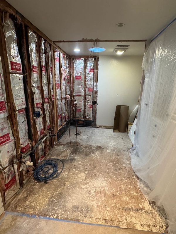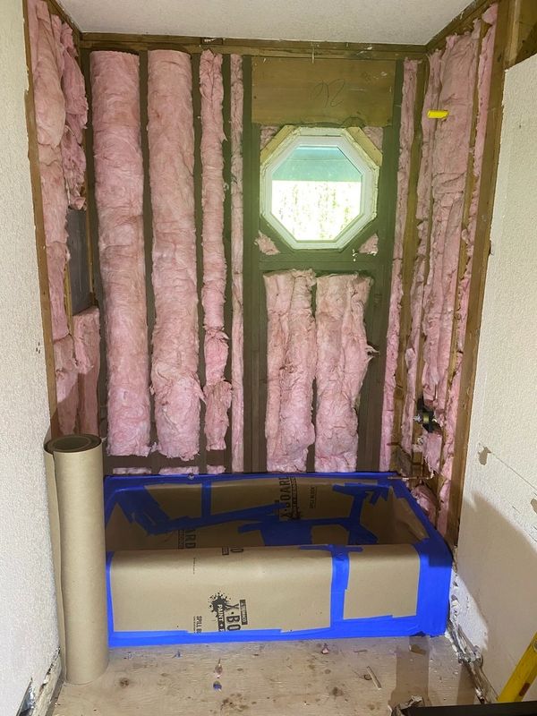 New tub is in. Insulation of exterior wall. Inspection passed.