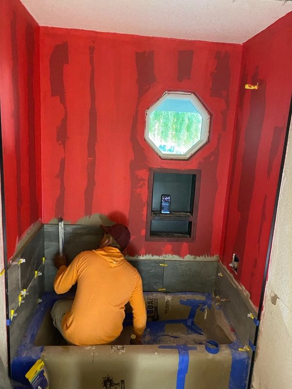 Waterproofing is now complete to ensure long-term durability and safety in the wet areas