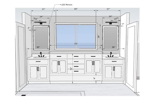 Functional vanities, recessed mirror cabinets, more space, light and comfort